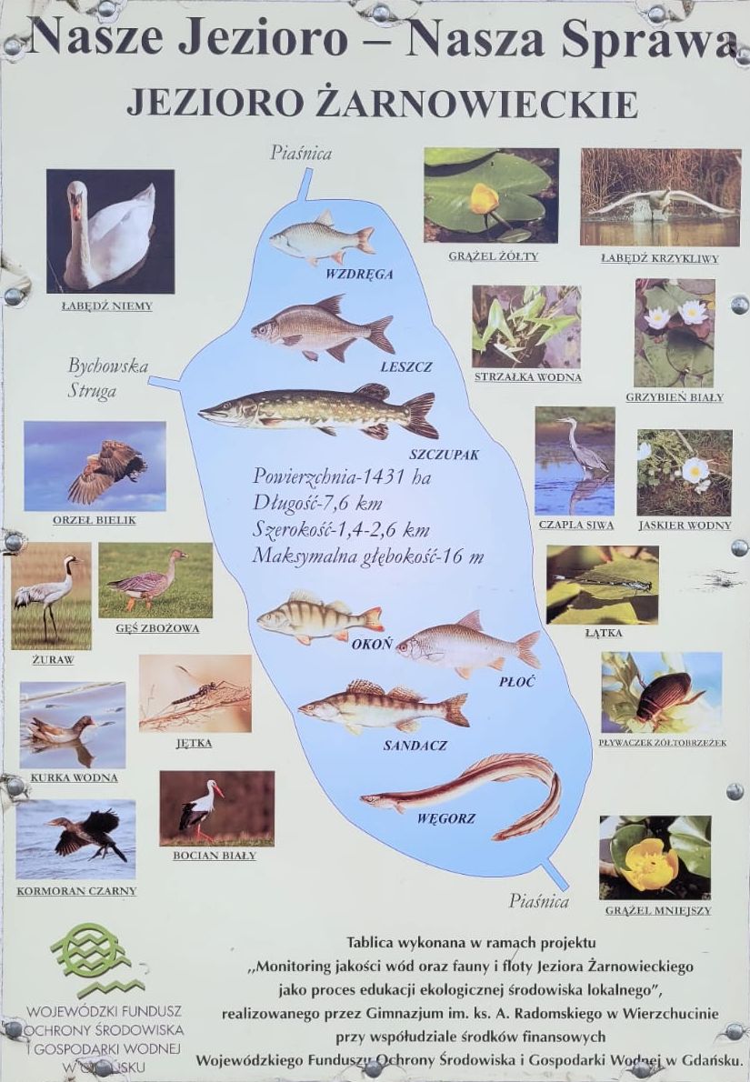 - Jezioro Żarnowieckie jest też rajem dla wędkarzy. Na miejscu można wykupić pozwolenie na połów ryb na jeziorze. Tablice informacyjne na przystani mówią o tym, jakie ryby występują. Żyje tu ponad 20 gatunków ryb ze szczupakami i łososiami włącznie.